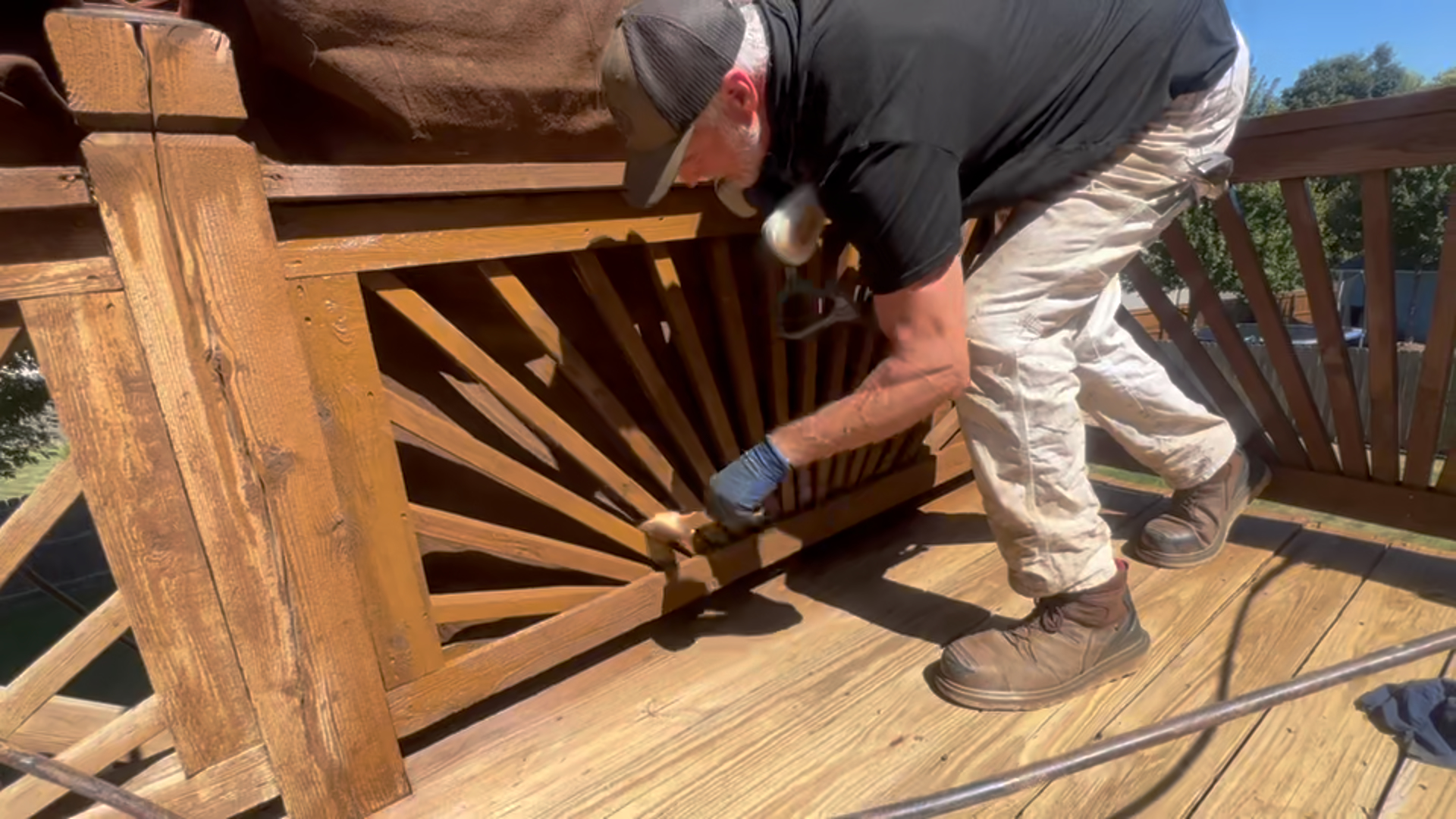 Spindles are the most complex and most time-consuming part of most deck staining jobs. Having to hand brush countless spindles is what deck stainers dread. It has been said that a tool costs you whether you have it or not. Imagine staining spindles twice as fast as with a brush: stain entire handrail and those hard-to-reach inverted areas with speed and ease.